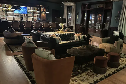 Welcome to The Emigrant, where style meets comfort. Enjoy expertly crafted drinks at our inviting lobby bar or relax on the outdoor patio, complete with a serene waterfall and cozy fireplace. Inside, open ceilings create a spacious, modern feel, while live entertainment from local and guest artists adds to the vibrant atmosphere. Our curated drink menu features fresh, handcrafted mixers for top-quality cocktails. Join us at The Emigrant for a perfect blend of charm, design, and exceptional service.